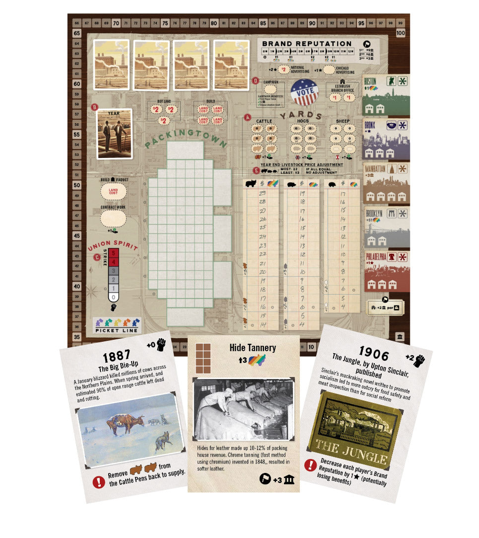 Union Stockyards was designed with the history carefully researched and implemented into the facets of gameplay. These mechanisms include: